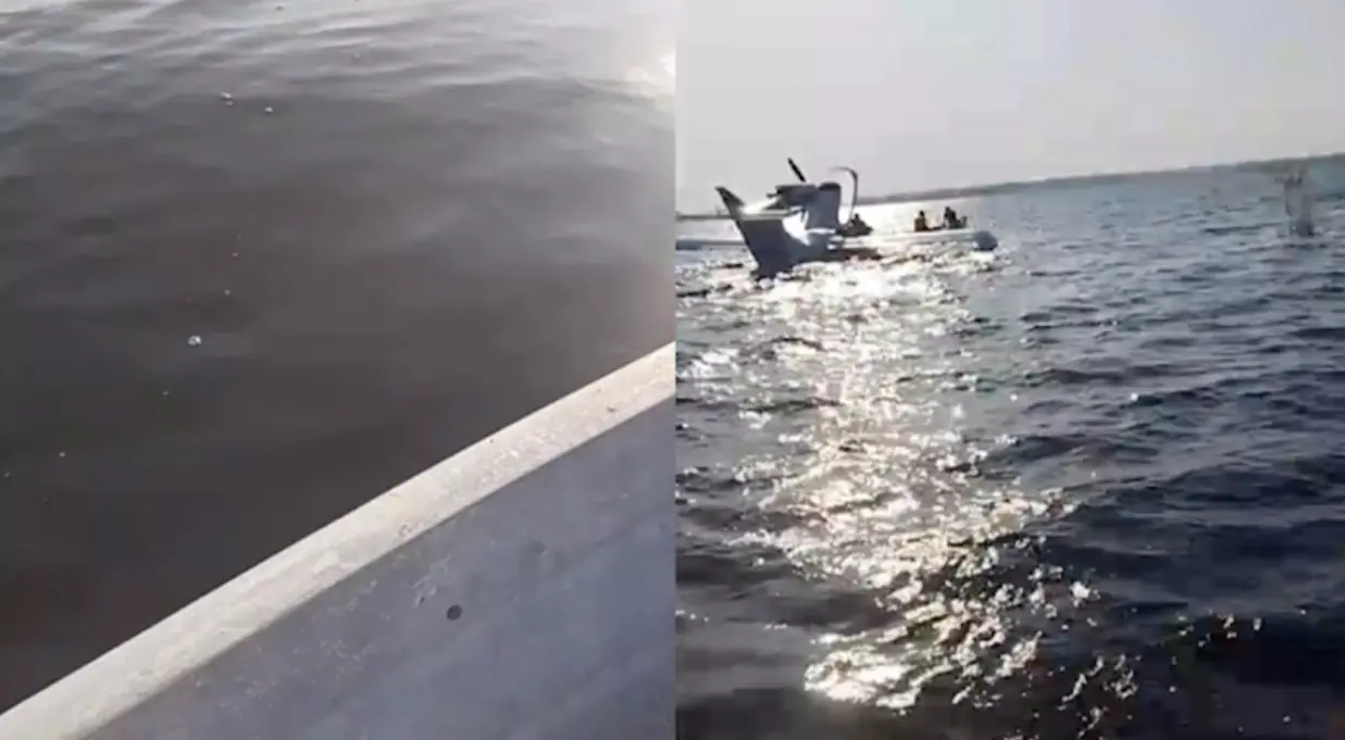 Vídeos gravados por testemunhas mostram o momento em que o homem é retirado da água, consciente e aparentemente sem ferimentos graves.